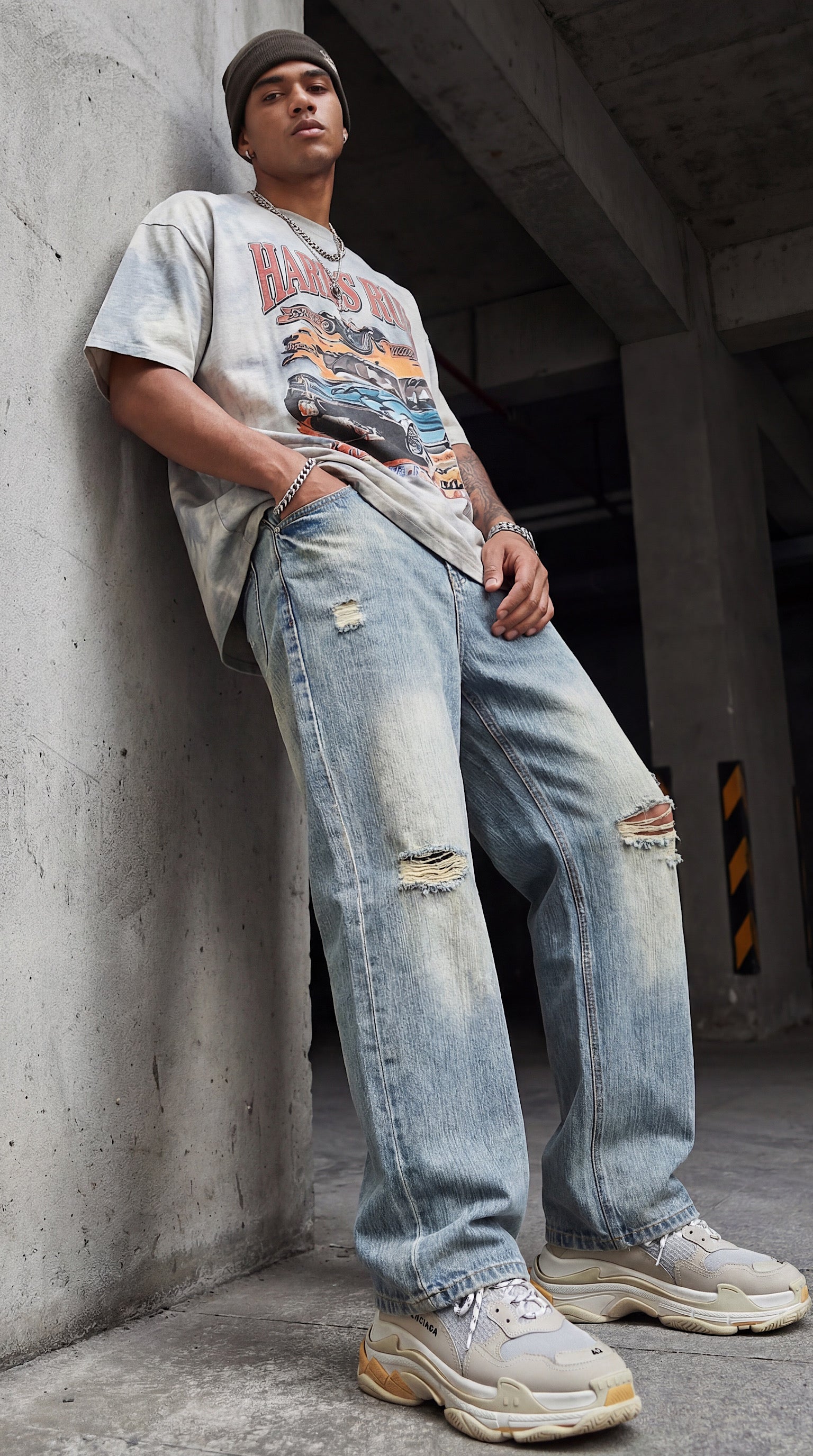 Vintage Wash Distressed Denim Jeans